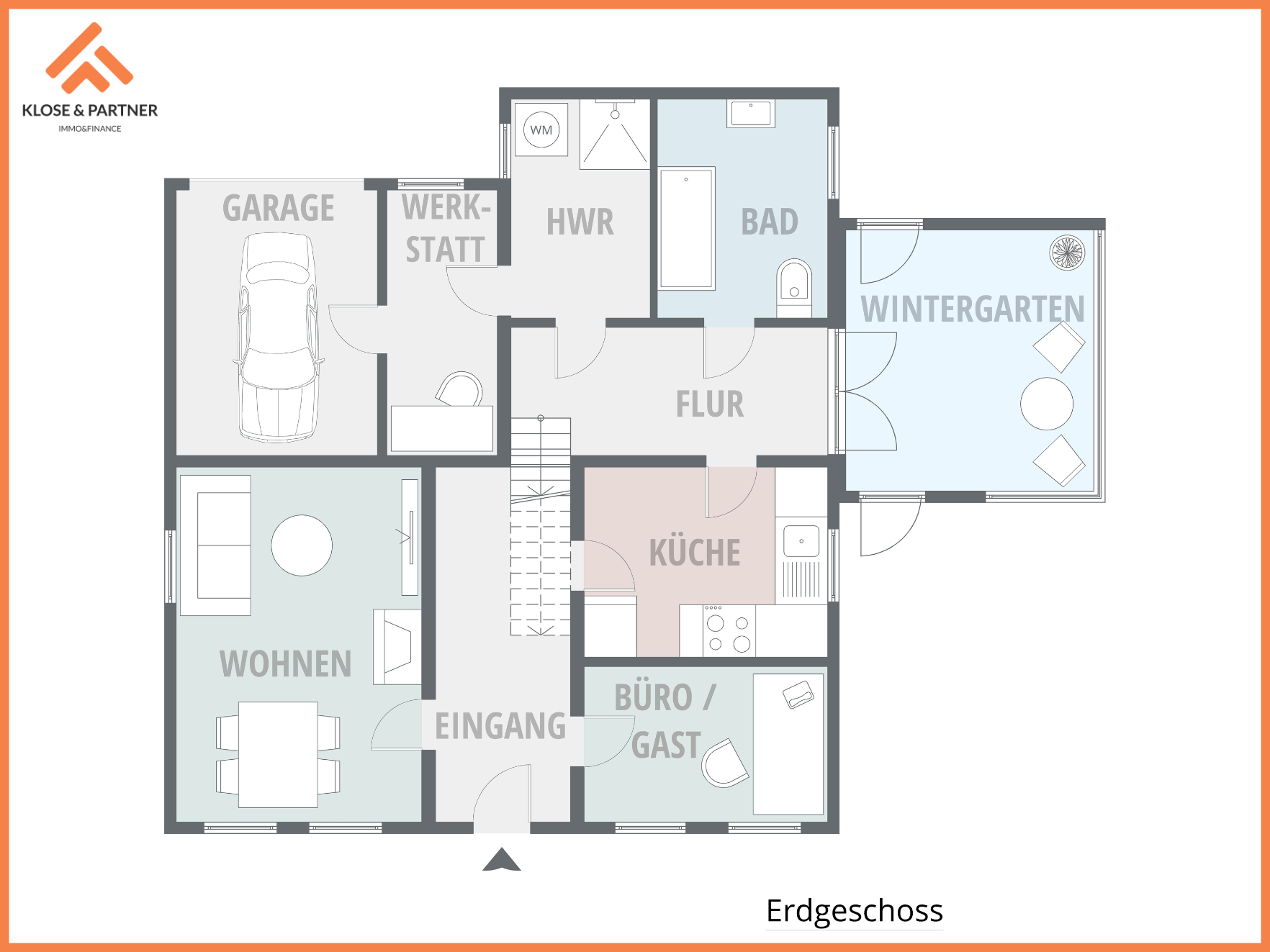 • Garage mit elektrischem Tor und angrenzender Werkstatt, Hauswirtschaftsraum mit Seiteneingang (perfekte Schmutzschleuse)